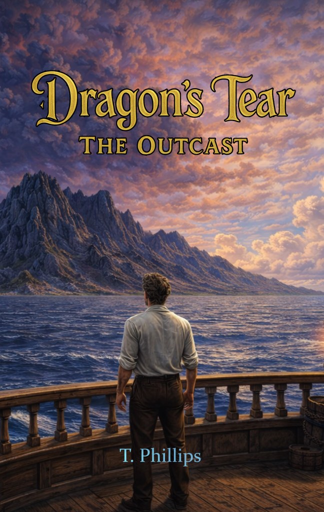 The first book in the Dragon’s Tear saga and the first book by T.Phillips, introduces us to our heroes: Talon, Caelan, Evelina, and Aldwin. Talon, the Captain; Caelan, a lord’s son; Evelina, a servant turned sailor; and Aldwin, a mage. Their intertwined histories reunite them in unexpected ways as Talon’s thirst for vengeance against the dragon that upended his life pulls everyone he encounters into his journey.
